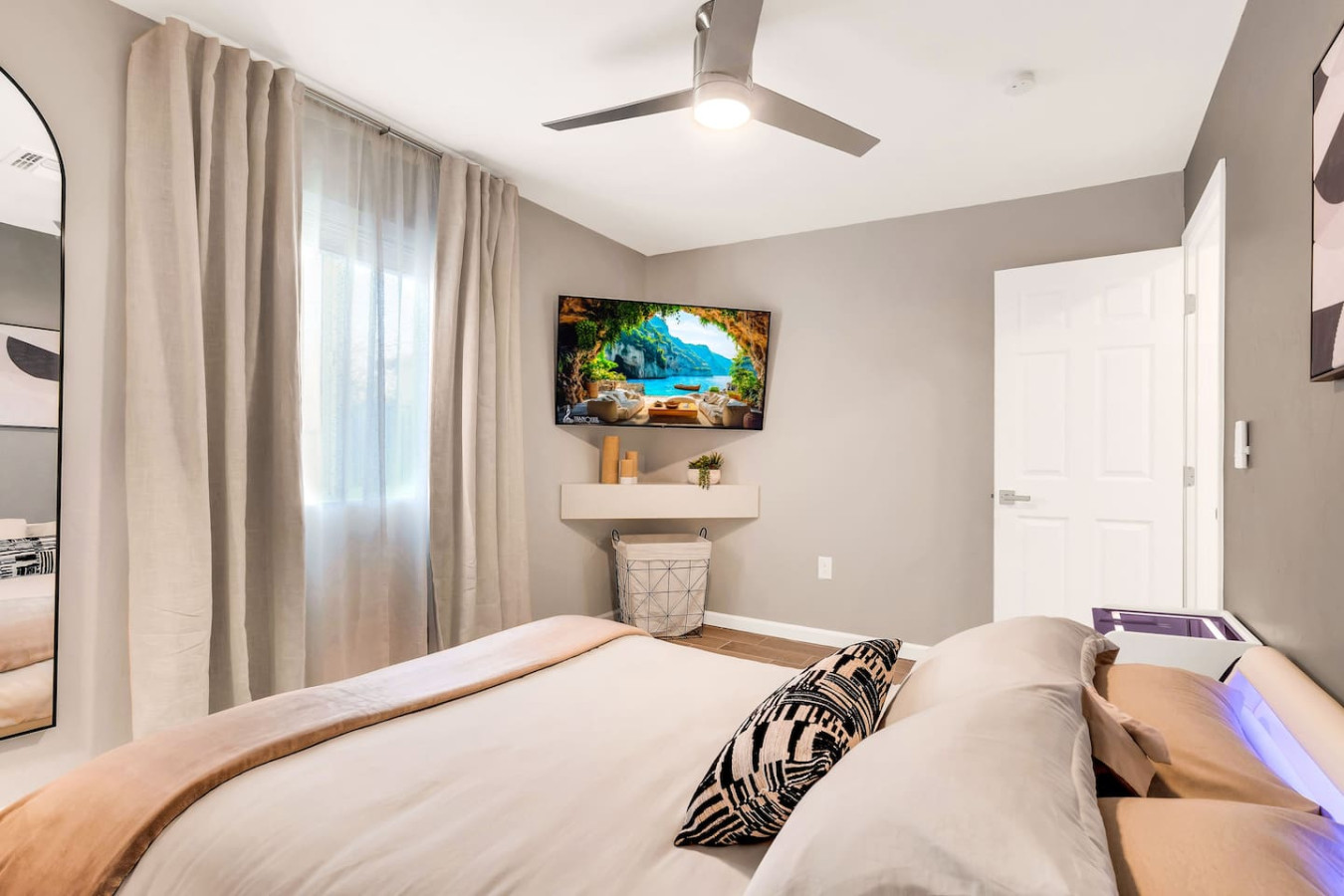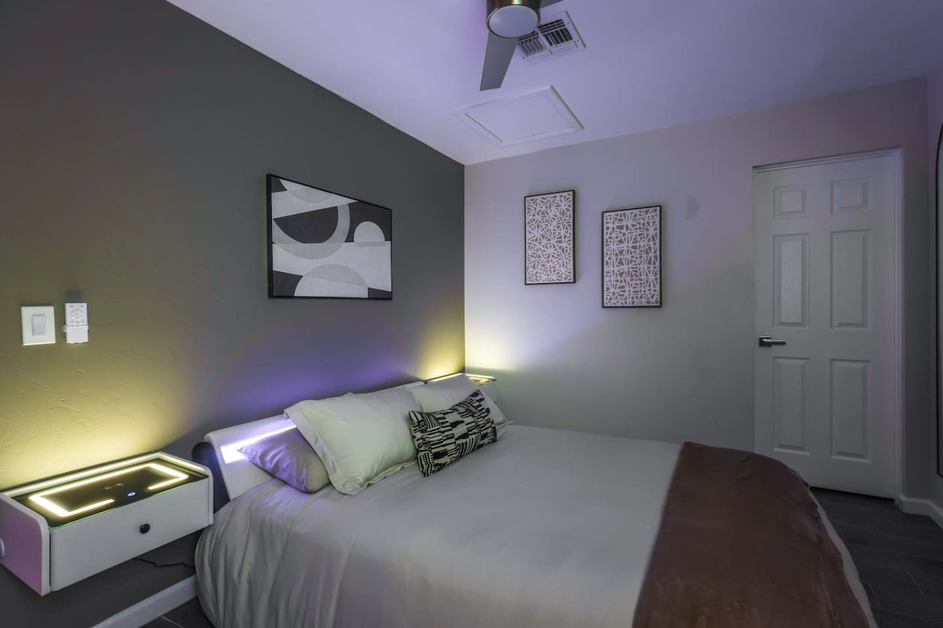 March 2025 5.005 stars all around! This home exceeded all expectations pictures don’t do it justice! Every detail was thoughtfully designed to maximize comfort and style. Despite its smaller size, it feels incredibly spacious and well-equipped. The location is central, with everything I needed close by, including Walmart and the gym just five minutes away. The aesthetic is straight out of Architectural Digest in the best way possible. The kitchen is compact yet impressively stocked, and the bathroom feels like something from a high-end resort—modern, pristine, and luxurious. One of my favorite details was the floating nightstands with built-in wireless charging—a small touch that made a big impact. Honestly, I’d live here full-time if I could! Staying in this beautifully designed space has inspired me to make changes to my own home. Can’t recommend it enough!